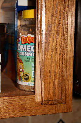 So there we were in the kitchen, Molly had just made herself a bag of popcorn to eat while she sat on the couch to read. Ryan of course wanted some as well. He jumped on the counter to get a bowl out of the cabinet so he could have his share and I'm not sure if he lost his balance and fell, but the next thing I know I'm standing in my kitchen with a cabinet door in my hands instead of it attached to the cabinet. Deep breath and big sigh from me and a hundred and one "I'm sorries" from Ryan. I think he grabbed the handle when he lost his balance and just pulled the whole thing down.