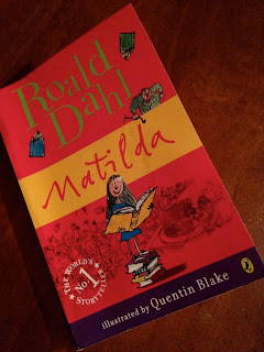 At dinner, Matilda was part of our dinner conversation. Chris never heard of the author Roald Dahl and then we started naming some of his books. We have a number of his books but I couldn't find Charlie and the Chocolate Factory. I remember reading The Fantastic Mr. Fox to the boys. Shannon remembers reading The Witches. I remember reading Charlie and the Chocolate Factory, and James and the Giant Peach with my second graders many years ago. We all remembered his stories.